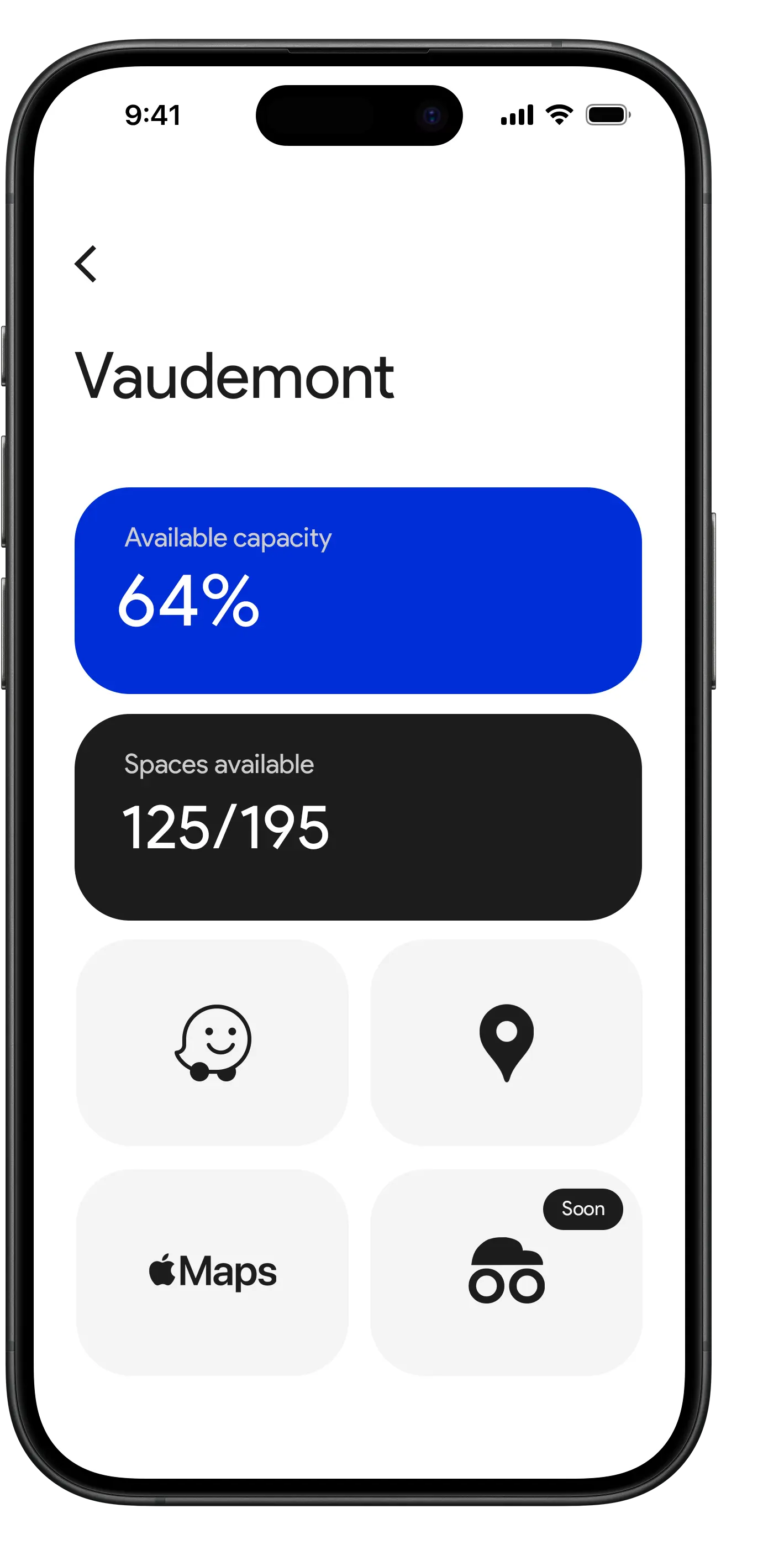 You can generate a route to the parking lot of your choice at any time, thanks to our partners Waze, Google Maps and Apple Plans.